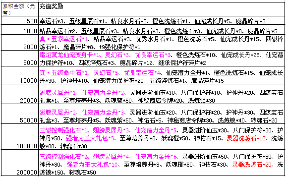 活动期间,单笔充值达到指定额度,还可以获得以下超值丰厚的奖励哦!