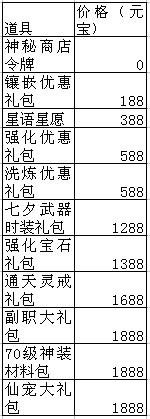 温馨提示:每样抢购物品每天能购买一次,购买物品为绑定,购买后直接发送至背包。