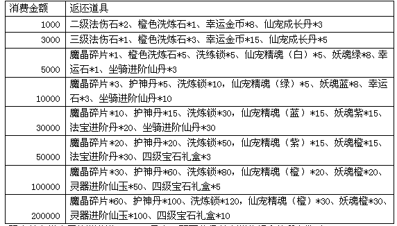 玩家若在指定系统消费满200000元宝,即可获得以上消费额度的所有奖励。