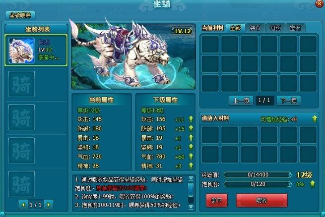 一、 坐骑喂养
