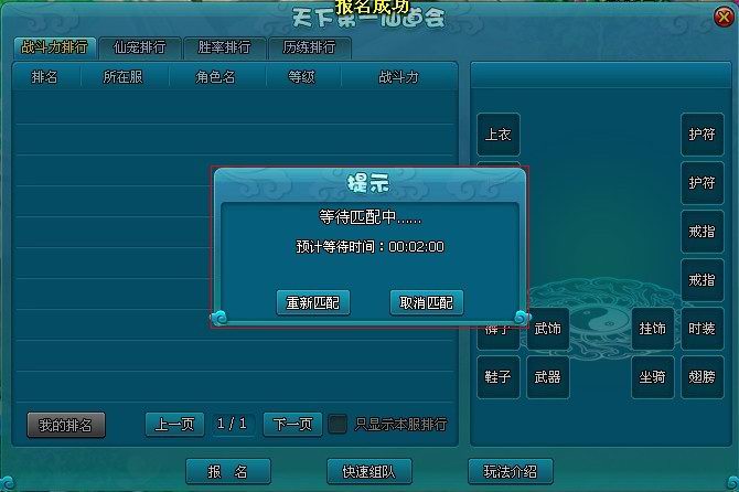 4.点击邀请,对方接受后再仙道会主界面点击立即报名,则会根据队伍的战斗力进行匹配(推荐和战斗力相近的玩家组队,否则会匹配到较为强大的对手),如下图: