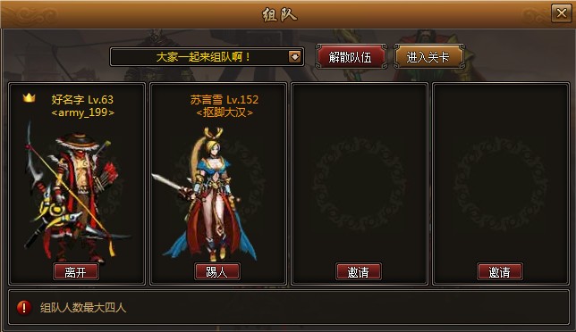 并可以点击【踢人】按钮,将队员踢出自己的队伍。