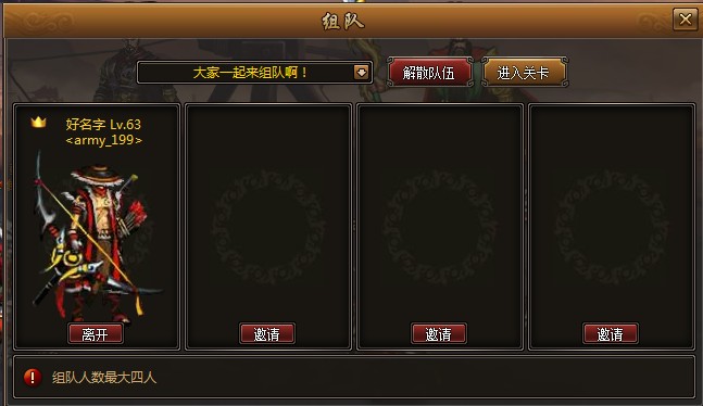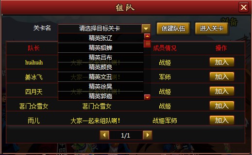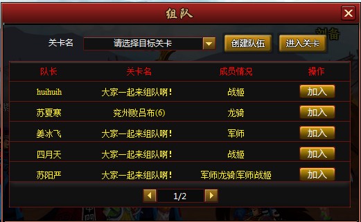 街机三国组队系统提供给玩家同步进行游戏的玩法,小队上限人数4人,由玩家自由组队,组队完成后,队长选择要挑战的关卡,小队所有成员一起进入关卡,并一起战斗。