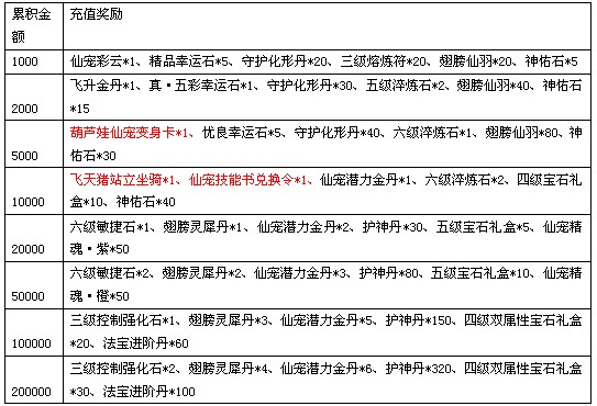活动期间,累积充值达到指定额度,还可以获得以下超值丰厚的奖励哦!