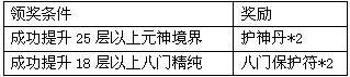 活动期间,将八门精纯、元神境界等级提升到指定等级,可获得额外系统赠礼。
