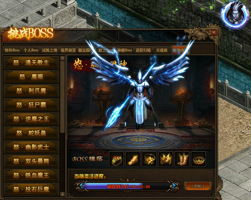 4 优化调整BOSS挑战内神族、魔族、中立BOSS合并为神魔BOSS列表内显示