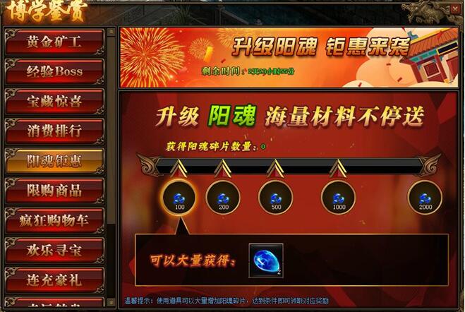 1.活动期间,玩家获得阳魂碎片数量,达到条件可领取对应阳魂碎片奖励。