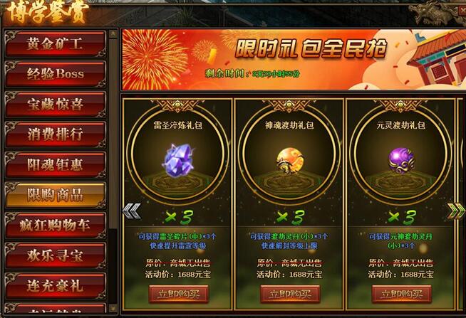 1.活动期间,玩家可在活动面板购买限购商品;(可翻页)