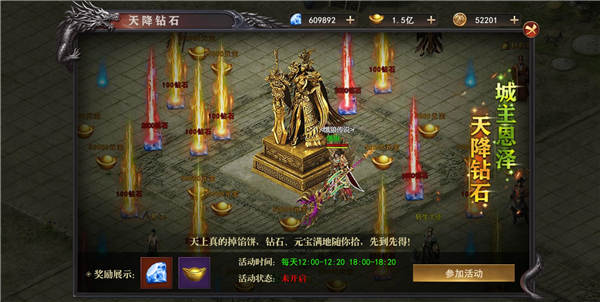 1. 活动开启后,将在王城安全区附近的随机生成多个钻石、元宝的采集物。