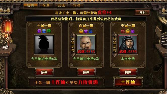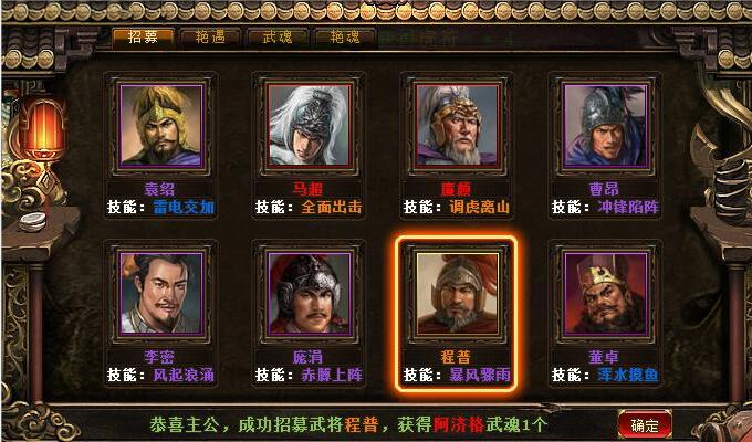猛将不喜欢吝啬的主公,出手豪放一点也能获得更好的武将。,一旦这些武将决定跟随您,他就会为您披甲杀敌。