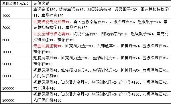 活动期间,累积充值达到指定额度,还可以获得以下超值丰厚的奖励哦!