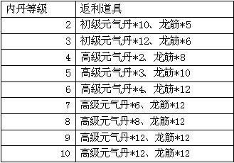 活动规则:活动期间,将橙色品质内丹升级到指定级别,可获得额外系统赠礼。