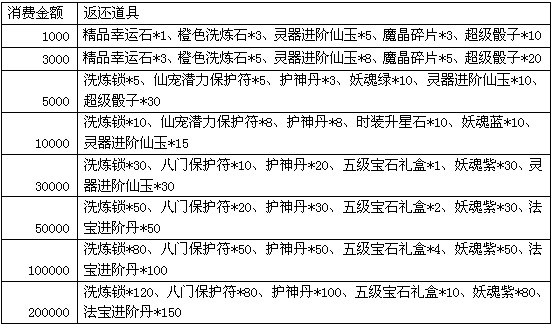 活动规则:活动期间,玩家在除市场外其他全部系统累积消费至指定额度,可获得额外的奖励。