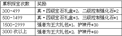 活动规则:活动期间,每天累计寻宝次数达到150次且在寻宝达人榜排行前3名玩家可获得额外系统奖励。