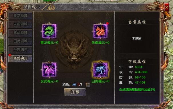 4、圣兽魂元升级需要消耗对应的圣兽魂元
