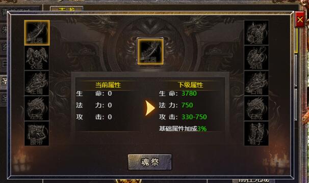 2、玩家穿戴五星圣兽装备后,可通过圣兽魂祭进行强化