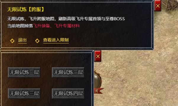 3、无限试炼含有特殊的福利BOSS,击败后有概率获得稀有飞升材料