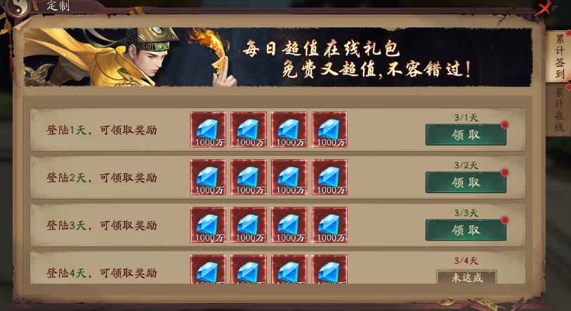 1、每日登录、在线免费送大量钻石,专属福利免费获得