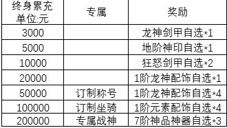 活动规则:从创角时开始计算,总累充返利每个档次奖励终身仅可领取1次