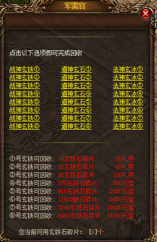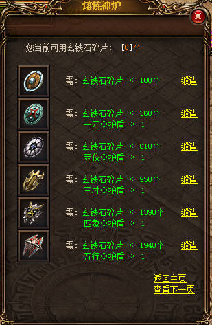 玩家在荒漠土城【锻造炉】处可使用玄铁石碎片提升盾牌