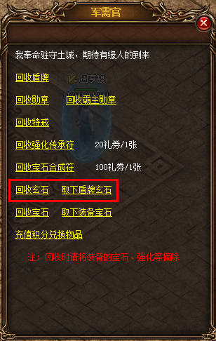 版本更新后玩家镶嵌的盾牌玄石功能将会无效,玩家可在军需官处取下盾牌玄石,兑换相应的补偿。